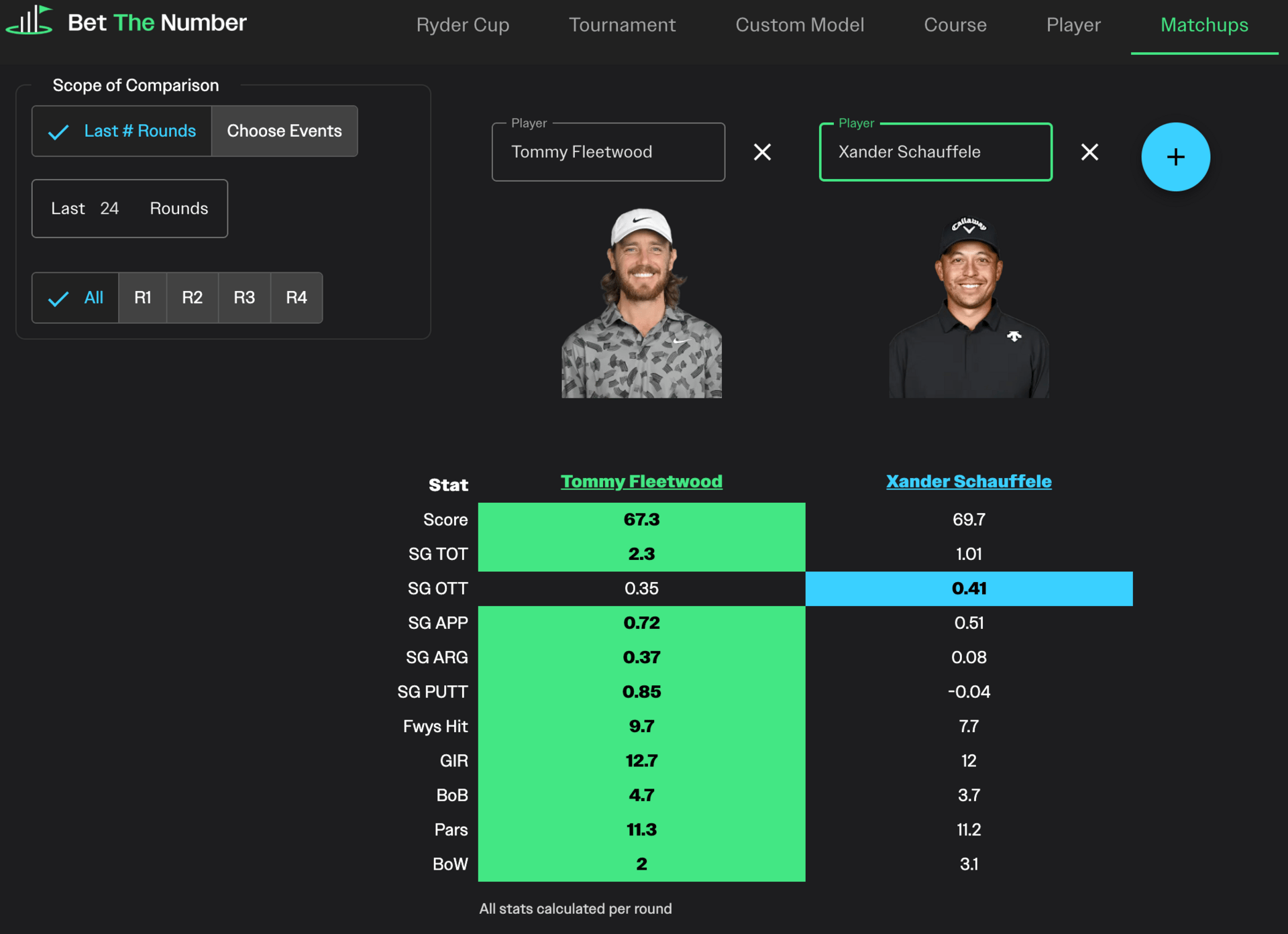 Tommy Fleetwood vs. Xander Schauffele in the BTN Matchup tool